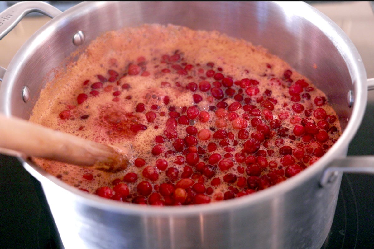 Cranberries naturally contain a lot of pectin. This means no added pectin is necessary to make cranberry sauce but you do need to test to ensure a gel will form when it cools. There are several ways you can test for doneness.