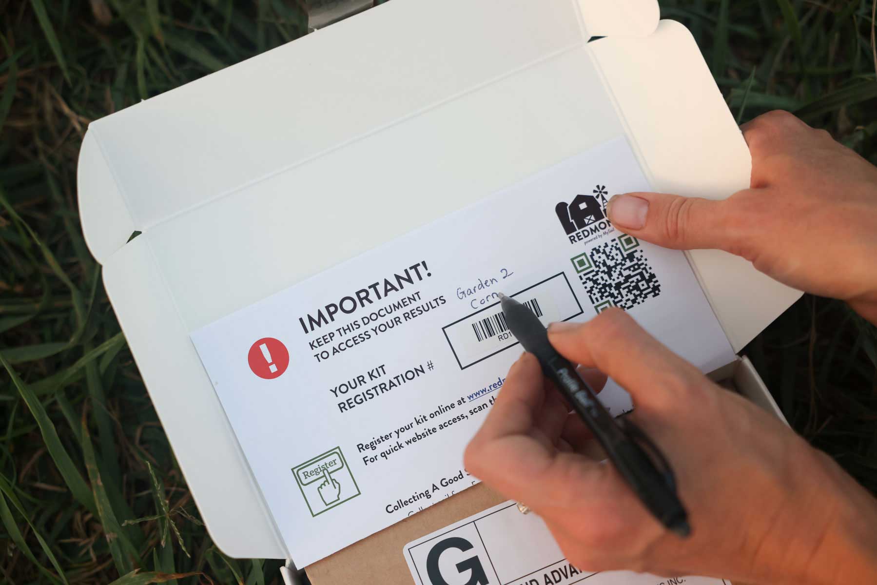 Note: You can also register immediately after you take the soil sample. I chose to do it after because I had 4 soil test kits and wanted to make notes of which area I ended up testing on each registration form. You’ll want to keep that document for your records.