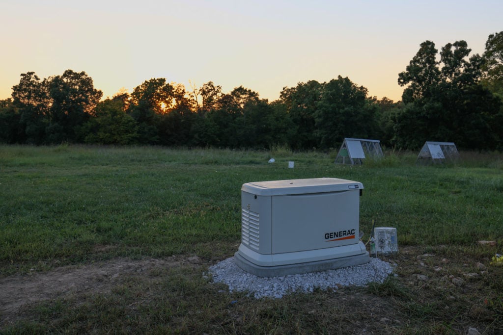 Later he got a load of gravel and used it for a base for the generator. The kids helped to level everything and tamp it down. We borrowed my sister’s furniture dolly and got the generator in place. It looks legit now!