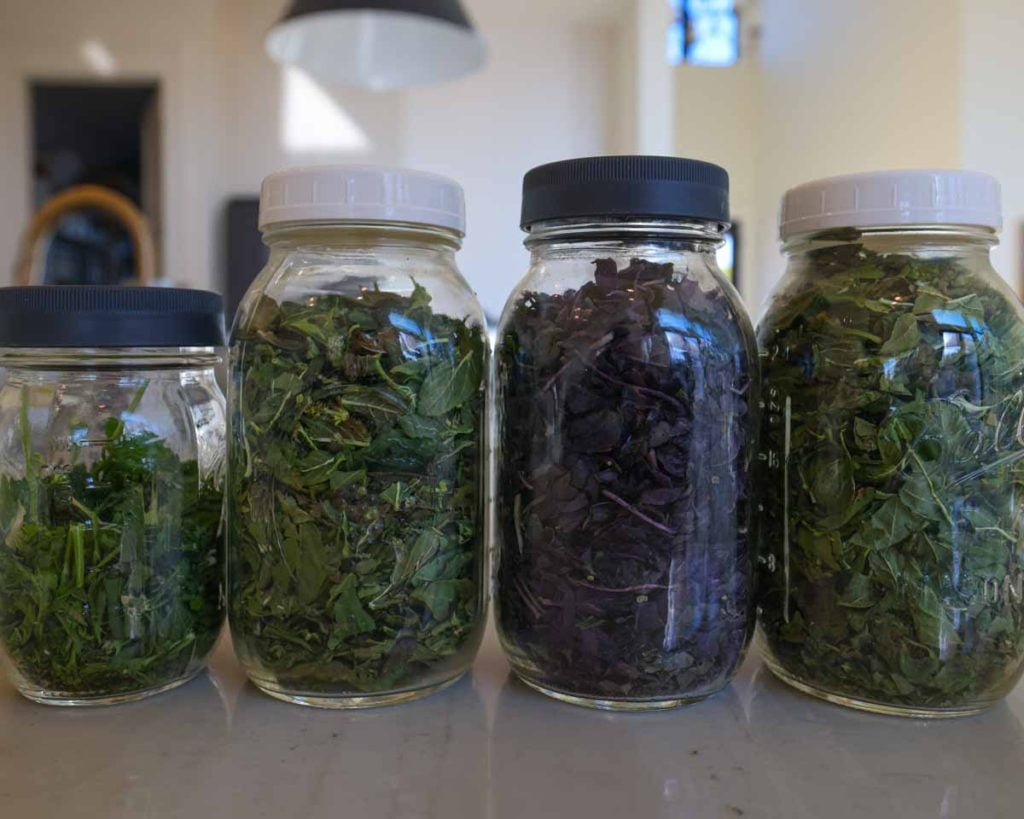 We preserved basil first by freeze drying it. I also froze the ripe tomatoes. At this point there are a lot of ripe tomatoes in the freezer but I got burned out of canning tomatoes last month and freezing was the best option.