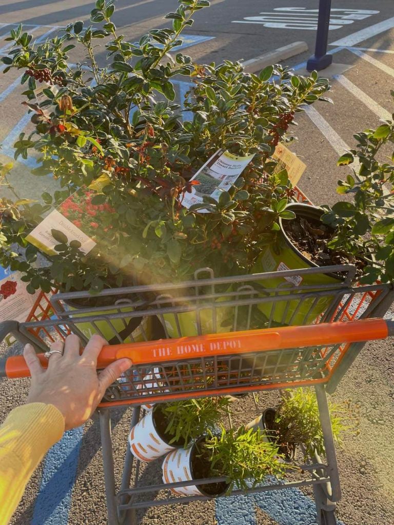 Now that the craziness of the garden season has slowed way down, I’ve been able to turn my attention back to the landscaping and plants around our home. A few days ago, I stopped by Home Depot to get some landscaping pins and I noticed all the outdoor shrubs and perennials were 50% off! The selection was limited but I was able to get some things that I know will do well in our area like dwarf hollies and knockout roses.