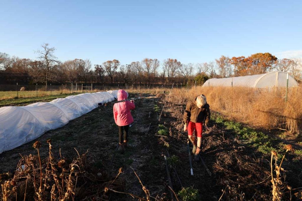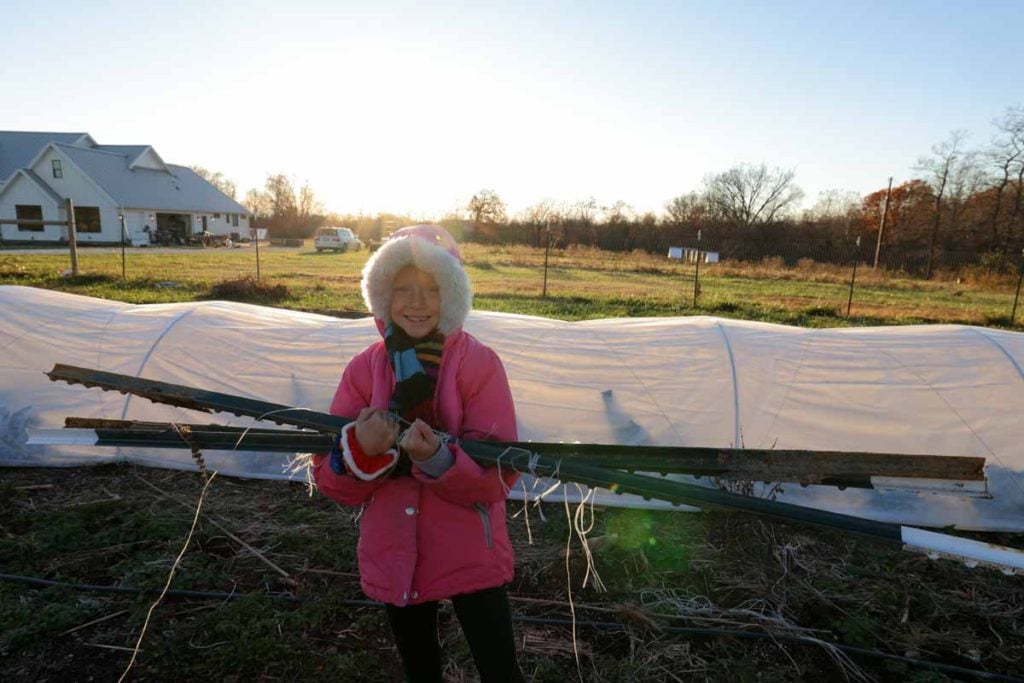 In the garden we are working on a lot of cleanup right now. It’s pretty unexciting but is a necessary step towards having everything ready for next season. We pulled Tposts out where the tomatoes were growing this year, then brought them all to the barn for winter storage.