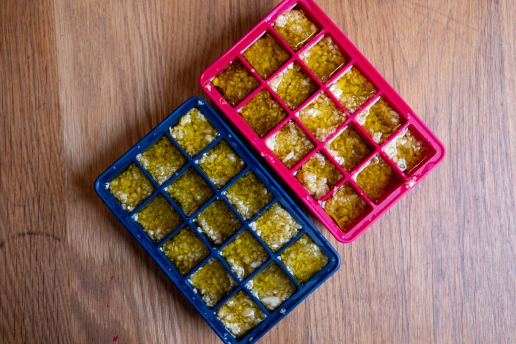 That was a much shorter time frame than I thought and I don’t really believe that. But I poured the garlic and oil into some silicone trays for freezing in cubes anyway.