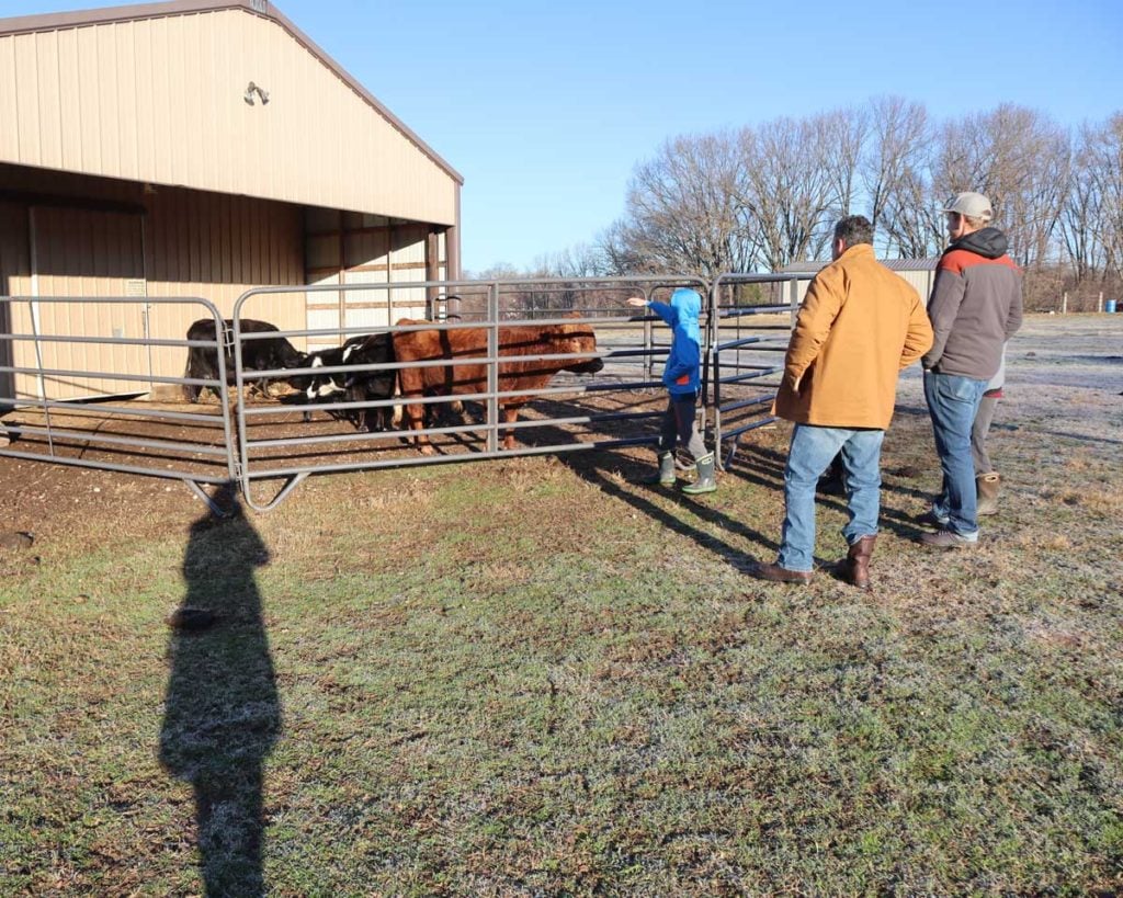 They had cattle panels that they hooked together so they could corral the cows. Then we gave the cows some feed. Our friends recommended the sweet feed but I don’t believe in feeding cows grain, we are doing 100% grass-fed. So I told Cameron we needed to figure out something else.