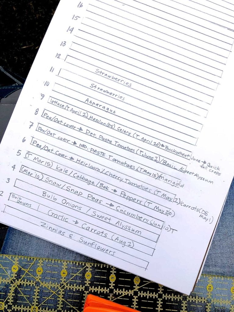 Now that our garden is growing in size, the planning is getting much more intense. I’m trying to get everything planned in a really detailed way because once the growing season begins it’s hard for me to remember when to plant and grow more, while I’m in the throws of picking and preserving.