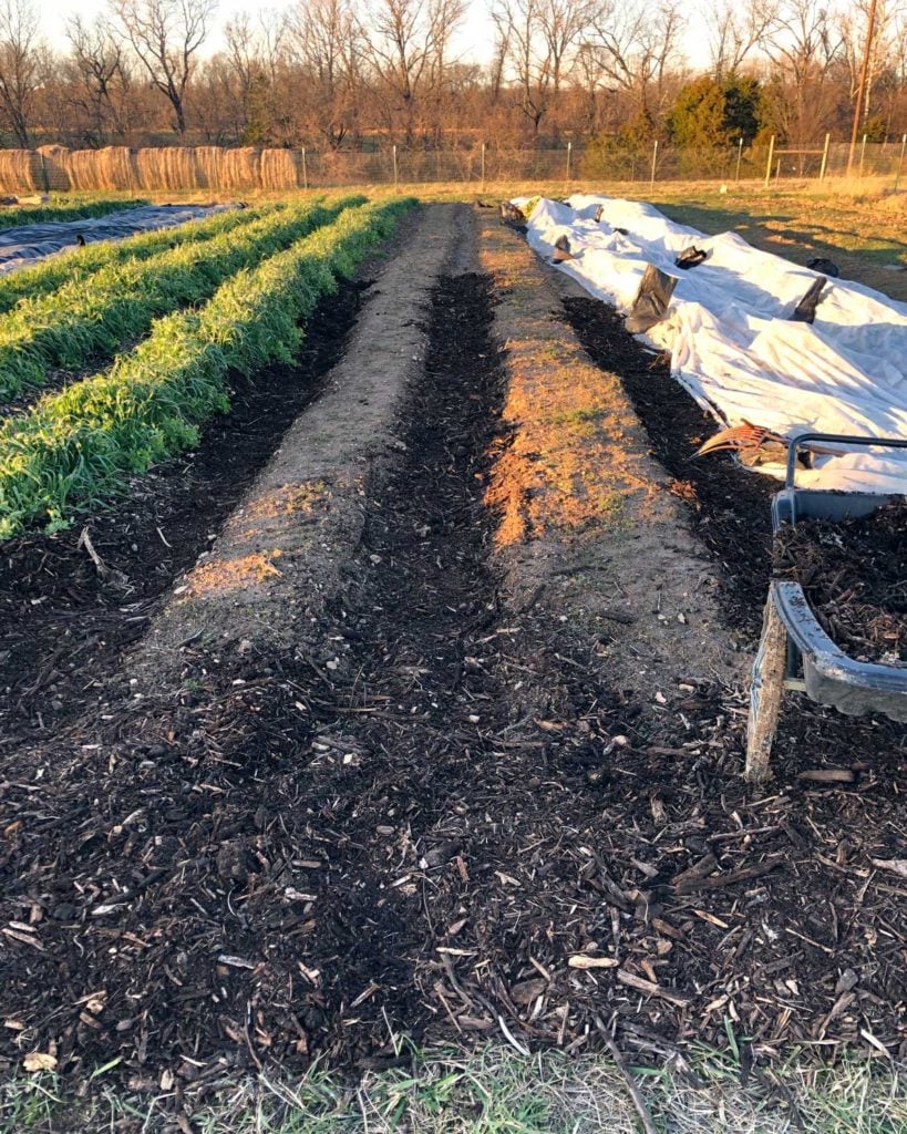I had to get out and get some vitamin D today after we did the cows so I mulched between garden rows. I always assume I can knock it out in a few hours but instead, after a few hours I was only halfway done and sitting on the grass exhausted and ready for a break. 🙂