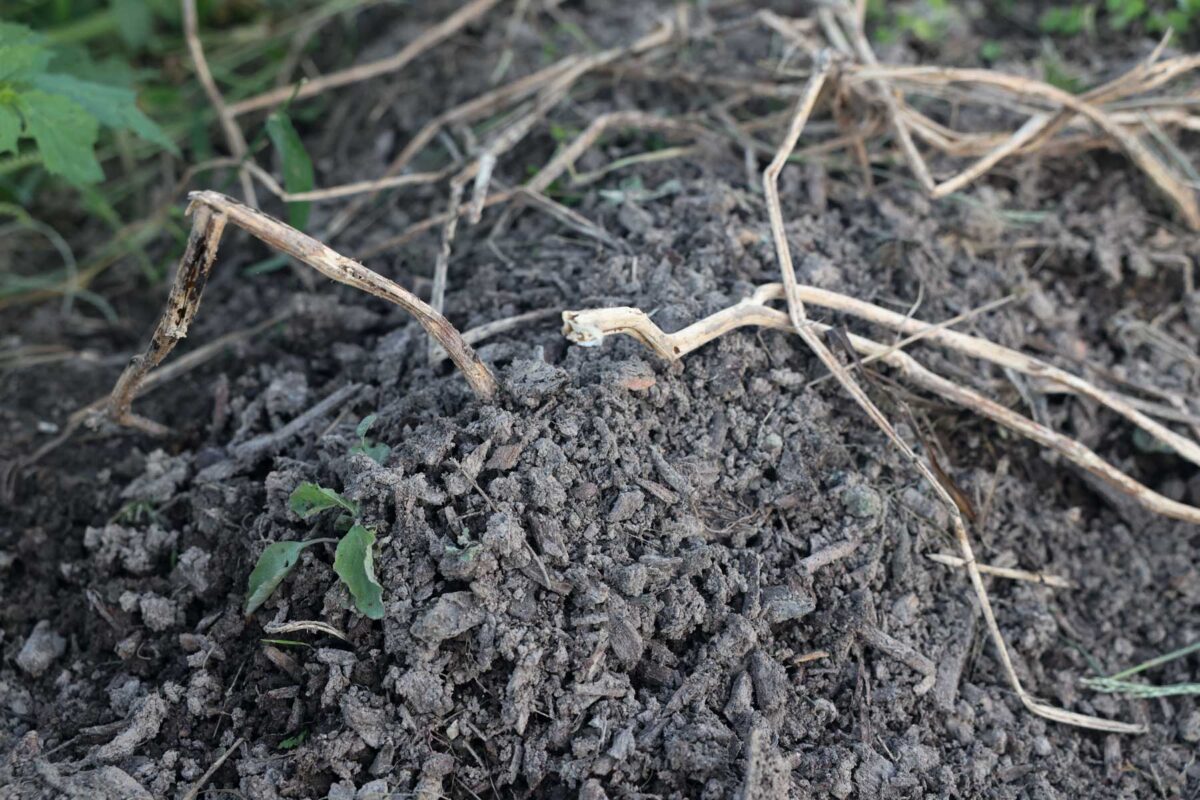 STAGE 4: Several weeks later, foliage begins to die back. This is the sign potato growth is slowing and they are close to maturity. Once the foliage is brown or yellow and dead the potatoes have finished maturing.